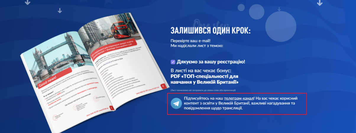 - підписувати на імейл-розсилку, чат-бот, канал і далі комунікувати з аудиторією там;