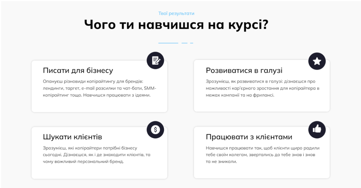 Твоя задача як копірайтера — передати вже затверджений текст в дизайн. На практиці, звісно, текст лендинга ще допрацьовується, може частково змінюватись вже після етапу дизайну та верстки, але правильна послідовність — саме така.