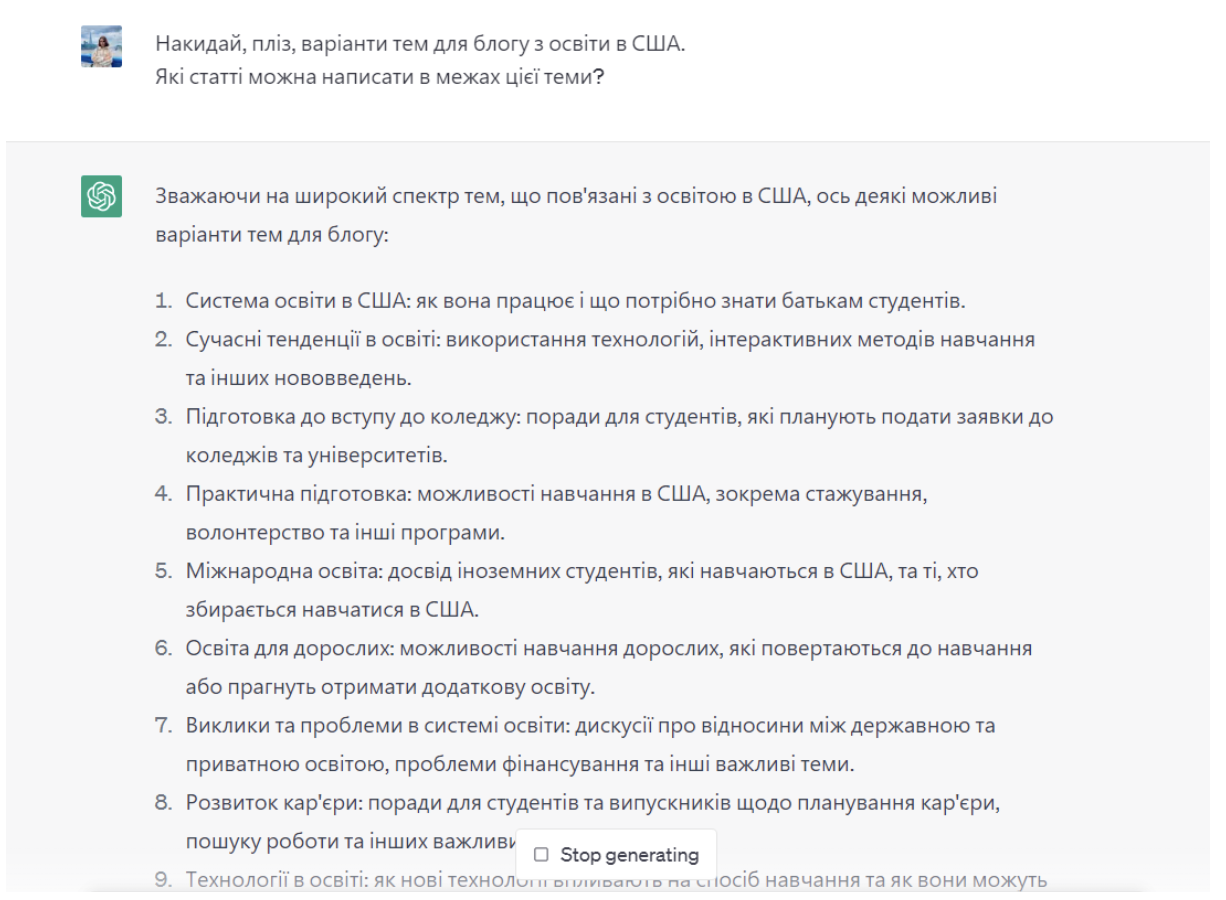 Я попросила штучний інтелект накидати ідеї для блогу з освіти в США. Ось як він мені допоміг ⤵️