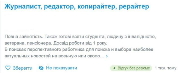 Тут, наприклад, все зібрали до купи. Але копірайтер, таргетолог, SMM-спеціаліст — все це окремі професії.